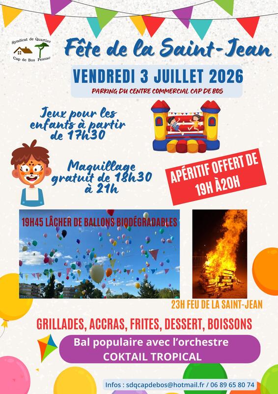 Le SdQ organise sa célèbre fête de la Saint-Jean sur le parking du centre commercial. Jeux pour les enfants, maquillages gratuits, lâcher de ballons, grillades, accras, frites, boissons le tout dans une ambiance festive animée par l'orchestre "Cocktail Tropical"