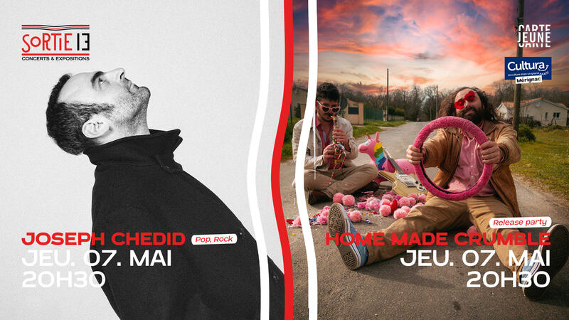 Sortie 13 - salle de concert vous invite le jeudi 7 mai pour les concerts de Joesph Chedid et Home Made Crumble.