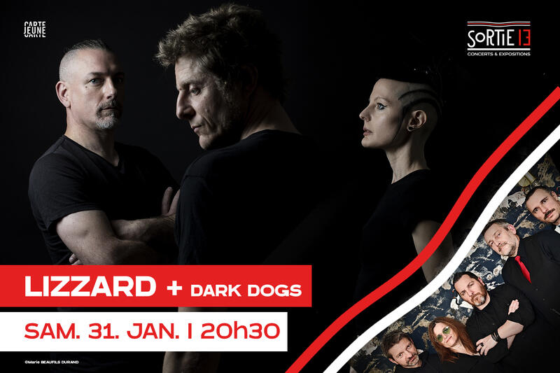 Rendez-vous le samedi 31 janvier 2026 à 20h30 pour le concert de LIZZARD, trio détonnant accompagné des DARK DOGS en 1ère partie.