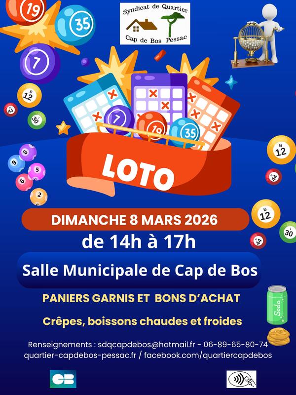 Le SdQ organise son loto de printemps avec de nombreux lots, bons d'achat, repas au restaurant, paniers garnis.......